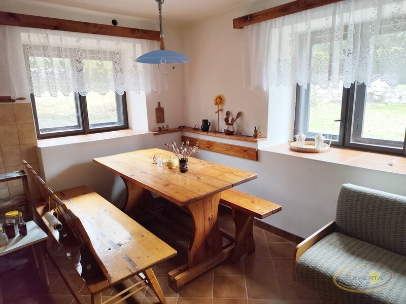 Nabízíme k prodeji rodinný dům, původní venkovskou chalupu se zastavěnou plochou 219 m2 a udržovanou zahradou v Nové Bystřici – místní části Ovčárna. Dispozičně je dům tvořen dvěma obytnými místnostmi (kuchyň a obývací pokoj) na které navazuje vstupní veranda a sociální zařízení (toaleta a sprchový kout).V chodbě je malá spižírna. Součástí domu je i hospodářská část – stodola – a malý sklep. Půda je čistá, vyklizená, krovy zachovalé, možnost vestavby dalších obytných prostor. Na pozemku je kopaná studna. Dům je suchý, větraný a působí velmi čistým a útulným dojmem. Je napojen na obecní vodu, kanalizace řešena jímkou. Vytápění zajištěno krbovými kamny. Vzhledem k lokalitě je dům ideální k rekreačním účelům ale i k trvalému bydlení. V obci veškerá občanská vybavenost. V okolí golfový resort Monachus, lesy, rybníky, cyklostezky propojené s Rakouskem, minimum cestovního ruchu, krásná lokalita České Kanady. Doporučujeme prohlídku.