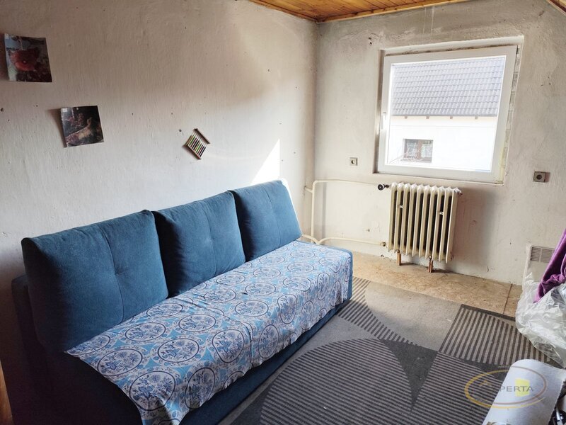 Prodej dvougeneračního rodinného domu se zastavěnou plochou 107 m2 a zahradou 784 m2 v obci Sudoměřice u Tábora. V přízemí domu se nachází vstupní chodba, původní kuchyně se spižírnou, sociální zařízení (koupelna s vanou , samostatné WC) a další 3 pokoje. V podkroví jsou k dokončení další 3 pokoje dle představ nového vlastníka. Je zde vyvedená voda a možnost tak vytvoření dalšího bytu s kuchyní a koupelnou. Dům tak plnohodnotně může nabídnout dvě samostatné bytové jednotky pro 2 rodiny. Vytápění domu je zajištěno zplynovacím kotlem Atmos ( 3 roky starý) , dalším zdrojem jsou pak krbová kamna na tuhá paliva. Kanalizace je řešena jímkou . Dům je podsklepený – je zde umístěná kotelna, dílna a část slouží k uskladnění potravin. Na pozemku je další stavba se zastavěnou plochou 35 m2, která původně sloužila jako prádelna. Dům využívá vlastní zdroj pitné vody z vlastního vrtu. Objekt byl zkolaudovaný v roce 1973, má nová plastové okna, nový zplynovací kotel a topnou soustavu, jinak je určen k rekonstrukci . Současný stav domu nicméně umožňuje objekt okamžitě užívat. Celková plocha pozemku činí 952 m2. Veškerá občanská vybavenost v nedalekých Chotovinách jen 6 km.